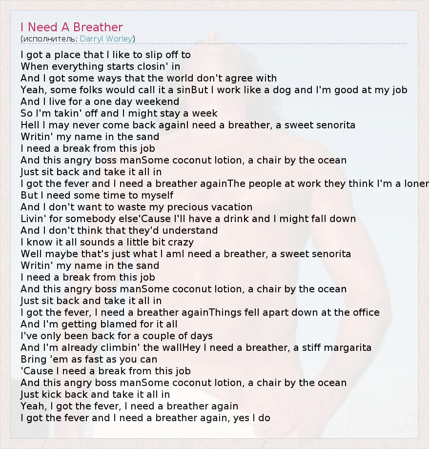 А как ты думаешь, о чем песня "I Need A Breather" ?