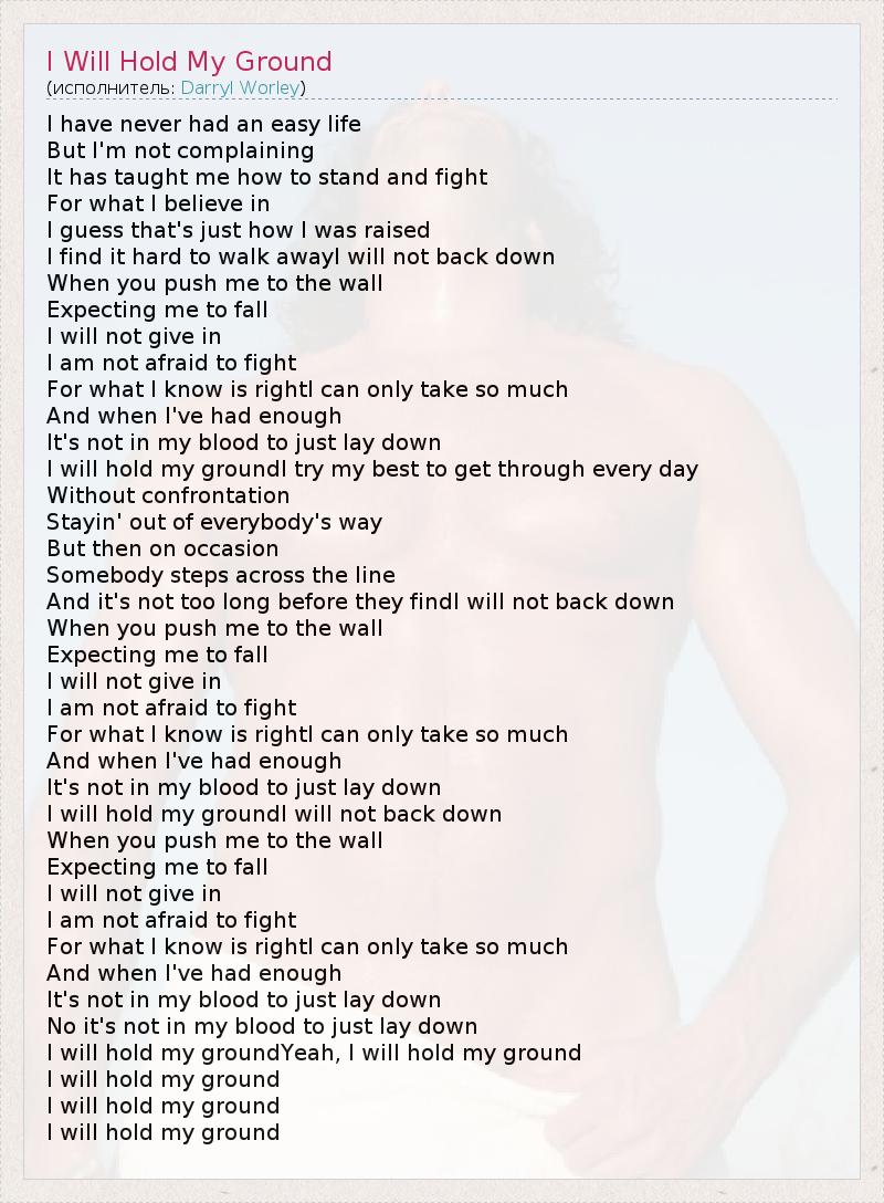 А как ты думаешь, о чем песня "I Will Hold My Ground" ?