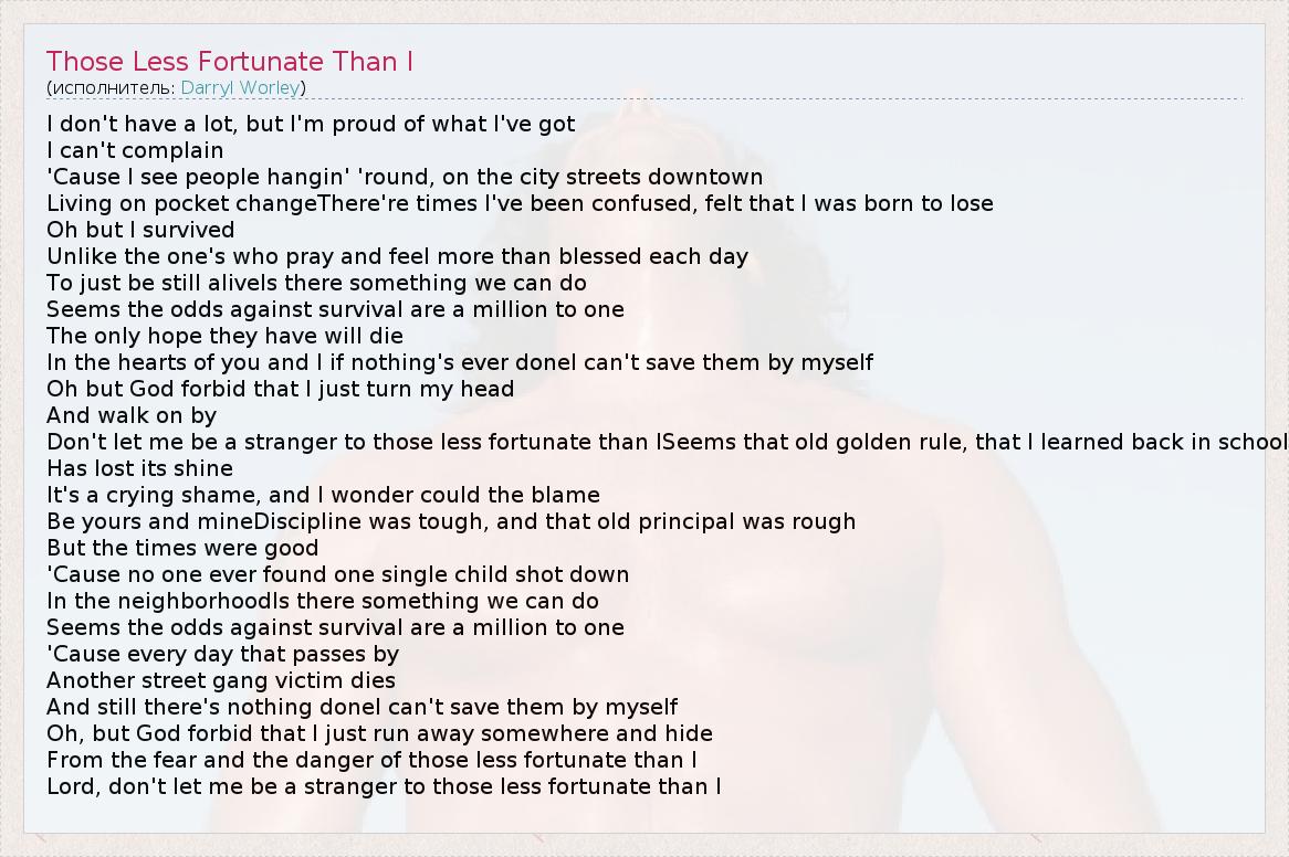 А как ты думаешь, о чем песня "Those Less Fortunate Than I" ?