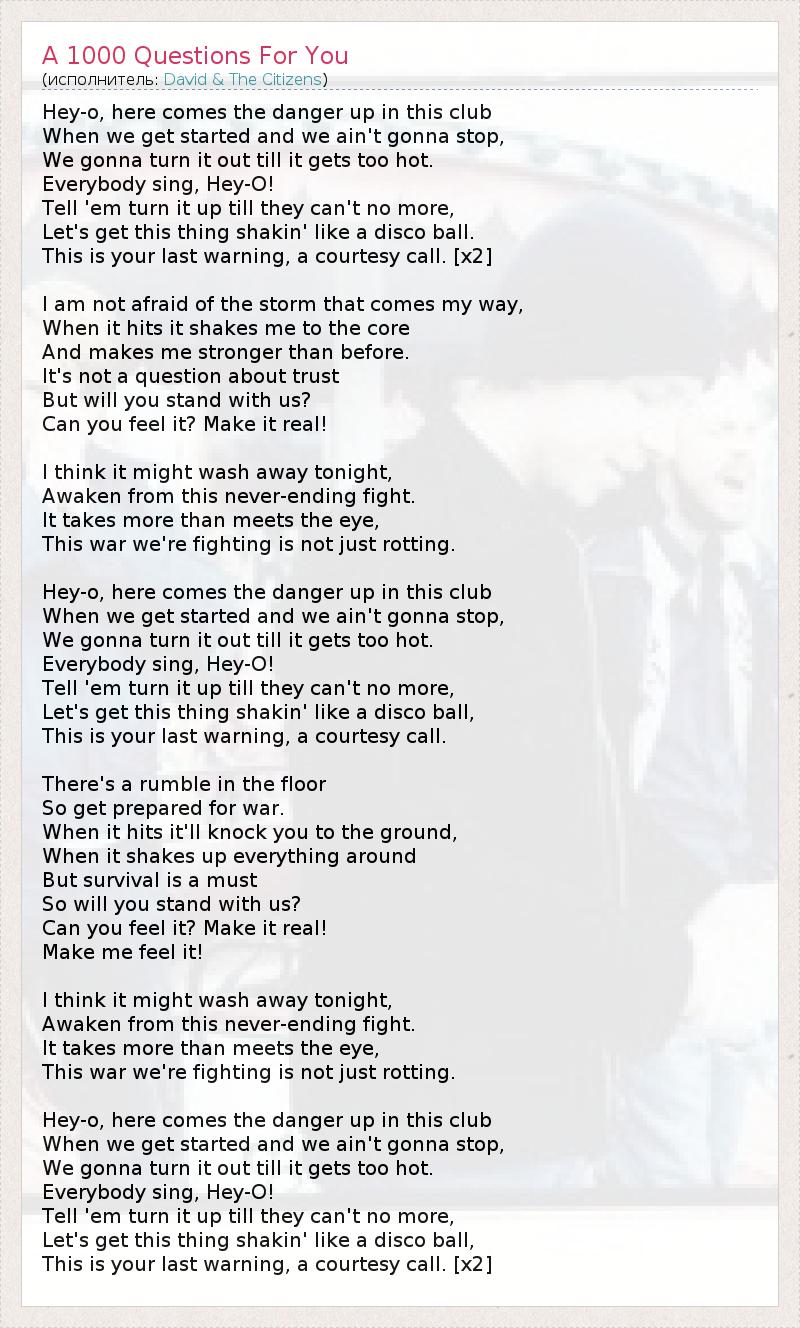 А как ты думаешь, о чем песня "A 1000 Questions For You" ?