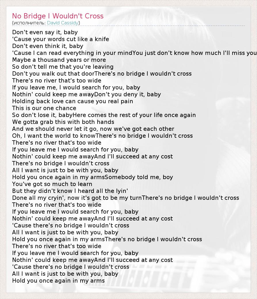 ГлавнаяИсполнителиDavid CassidyNo Bridge I Wouldn't Cross