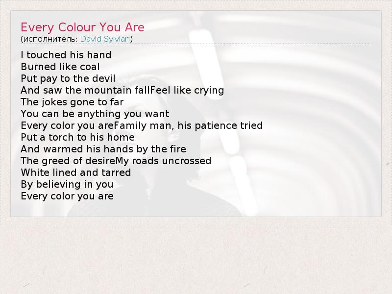 А как ты думаешь, о чем песня "Every Colour You Are" ?