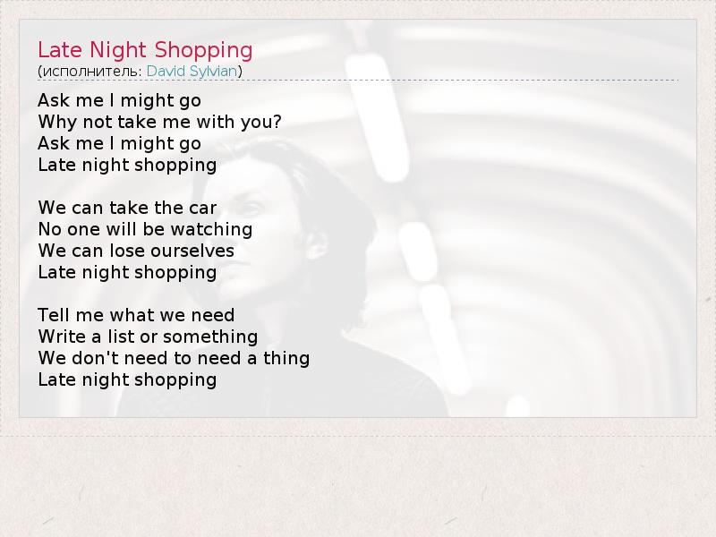 А как ты думаешь, о чем песня "Late Night Shopping" ?
