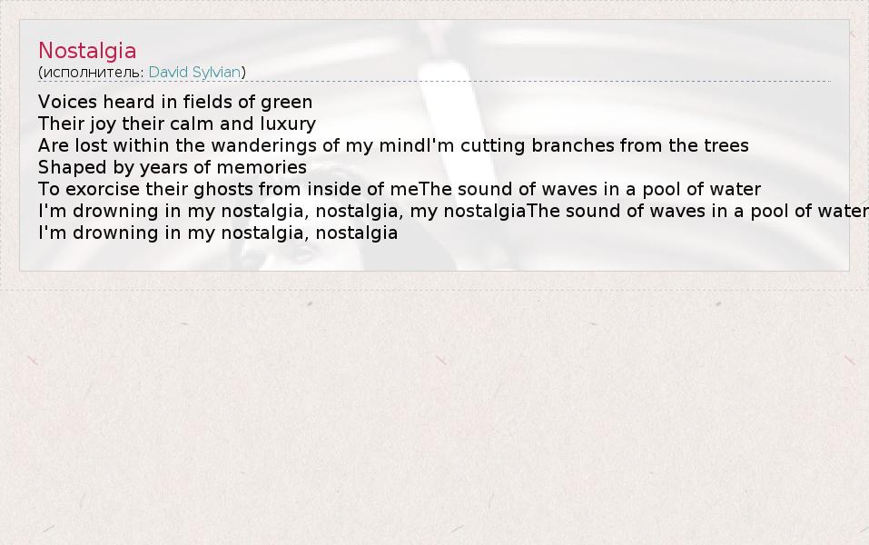 А как ты думаешь, о чем песня "Nostalgia" ?