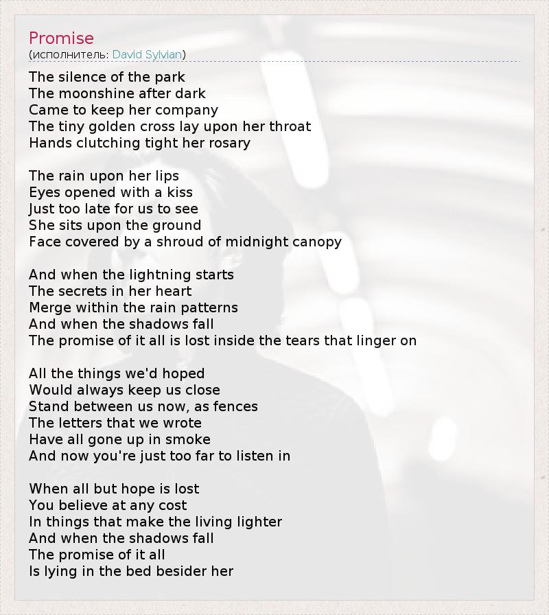 А как ты думаешь, о чем песня "Promise" ?