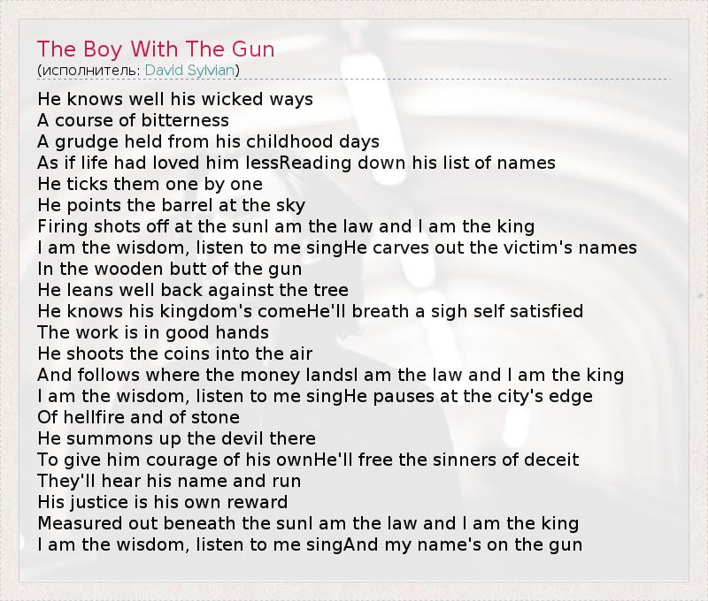 А как ты думаешь, о чем песня "The Boy With The Gun" ?
