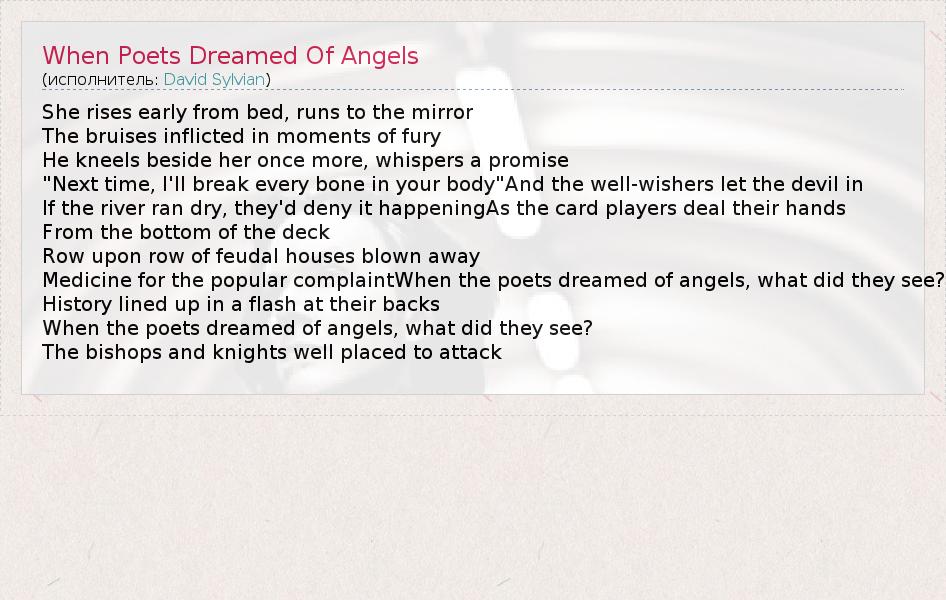 А как ты думаешь, о чем песня "When Poets Dreamed Of Angels" ?