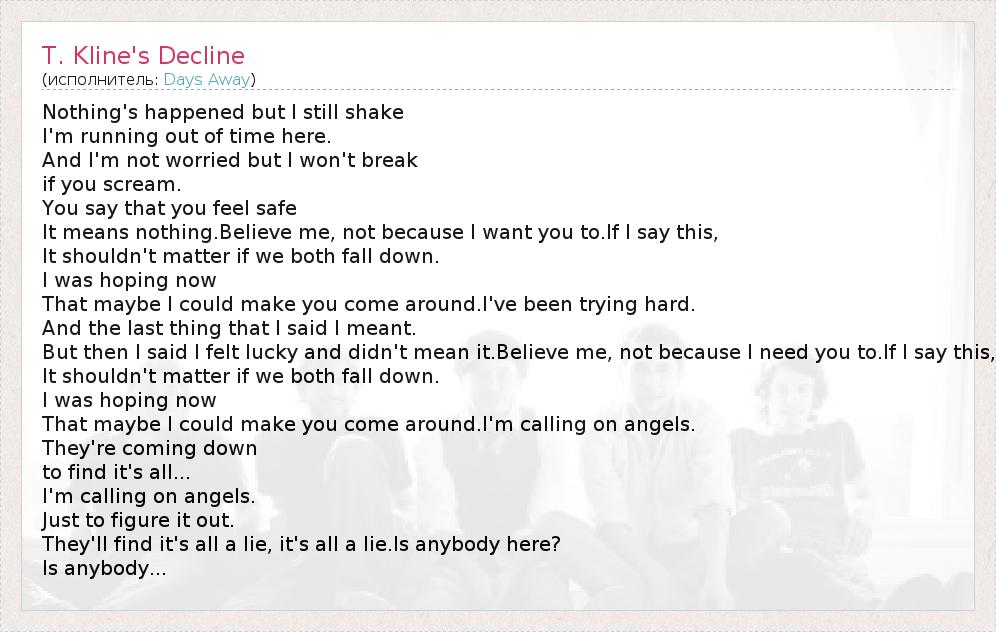 А как ты думаешь, о чем песня "T. Kline's Decline" ?