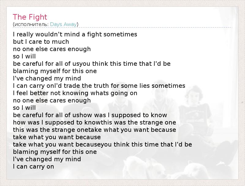 А как ты думаешь, о чем песня "The Fight" ?