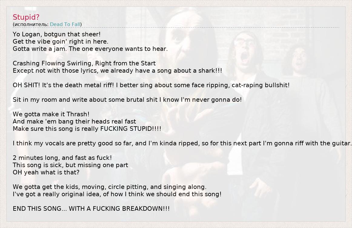 Make sure this song is really FUCKING STUPID!!!!