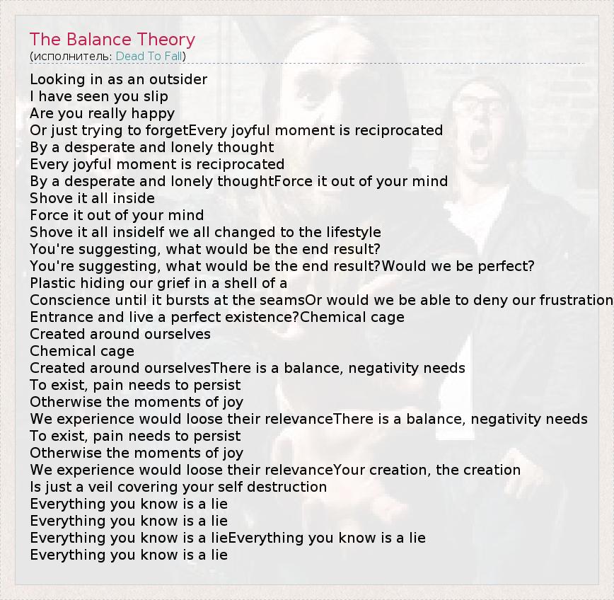 А как ты думаешь, о чем песня "The Balance Theory" ?