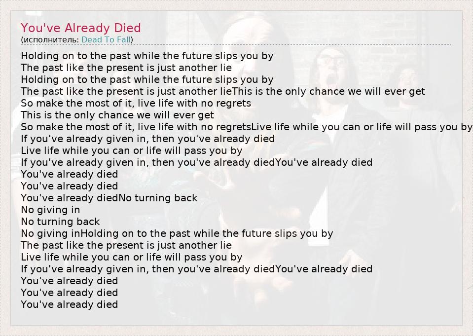 А как ты думаешь, о чем песня "You've Already Died" ?