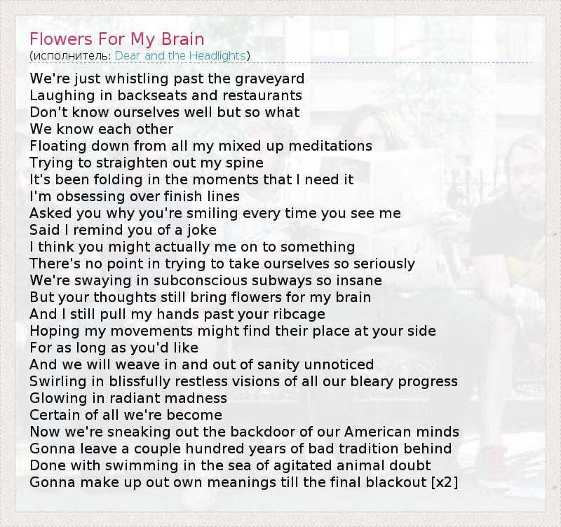 А как ты думаешь, о чем песня "Flowers For My Brain" ?