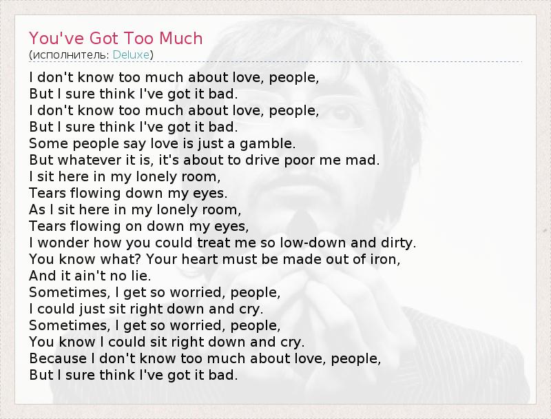 А как ты думаешь, о чем песня "You've Got Too Much" ?