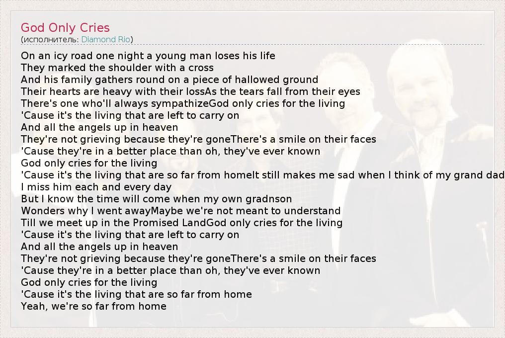 А как ты думаешь, о чем песня "God Only Cries" ?