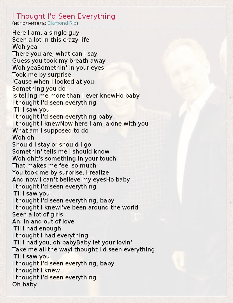 ГлавнаяИсполнителиDiamond RioI Thought I'd Seen Everything