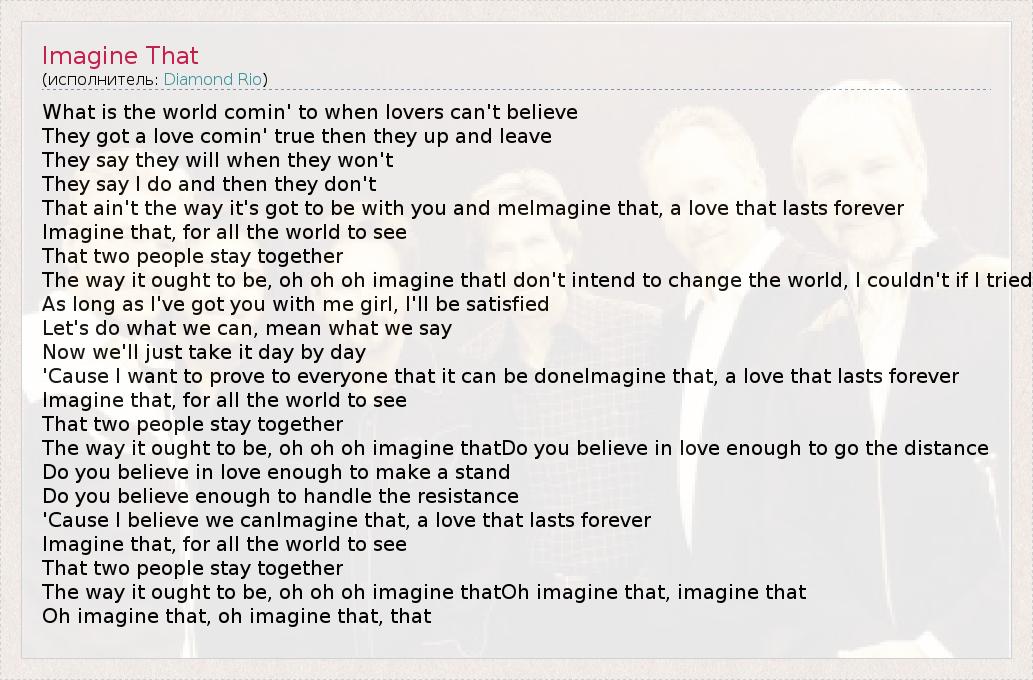 The way it ought to be, oh oh oh imagine thatDo you believe in love enough to go the distance