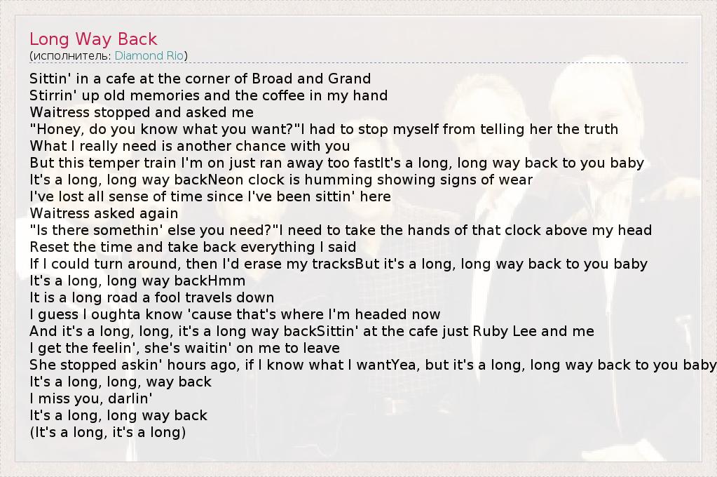 А как ты думаешь, о чем песня "Long Way Back" ?