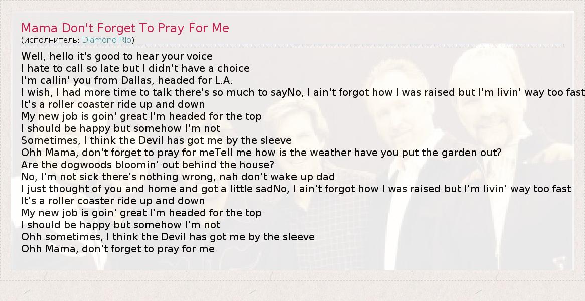 А как ты думаешь, о чем песня "Mama Don't Forget To Pray For Me" ?