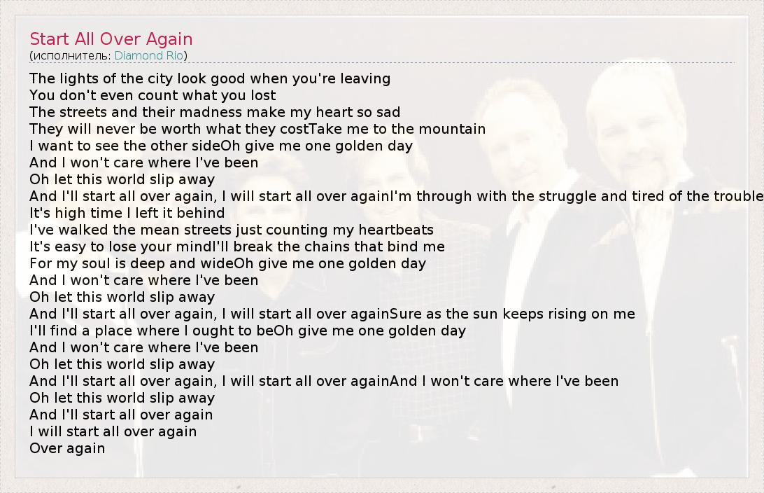 А как ты думаешь, о чем песня "Start All Over Again" ?
