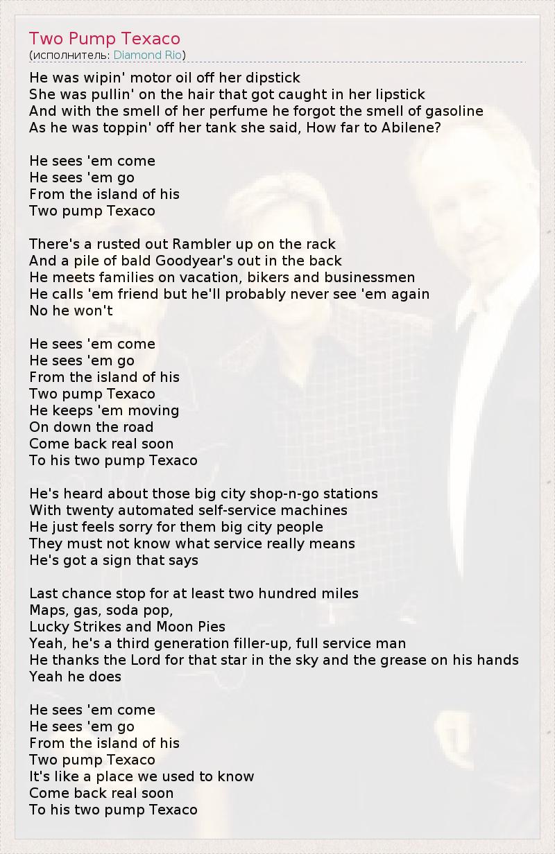 А как ты думаешь, о чем песня "Two Pump Texaco" ?