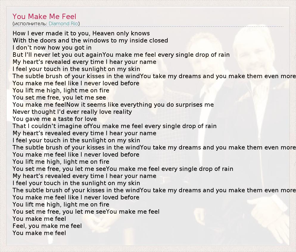 А как ты думаешь, о чем песня "You Make Me Feel" ?