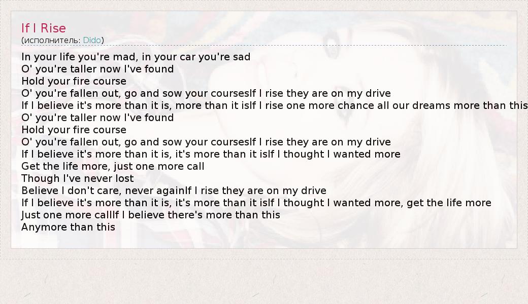 If I believe it's more than it is, more than it isIf I rise one more chance all our dreams more than this