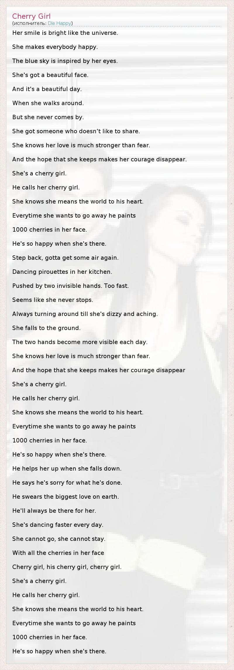 А как ты думаешь, о чем песня "Cherry Girl" ?
