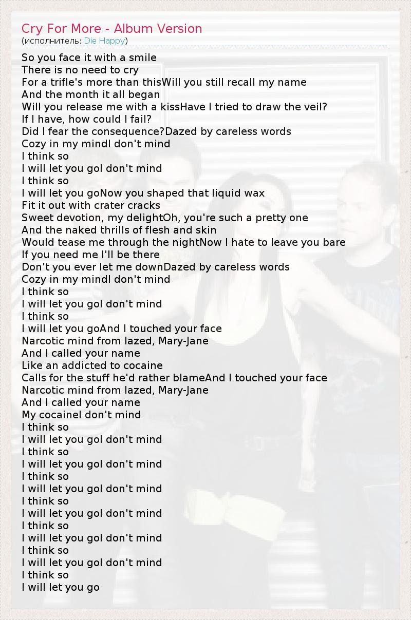 ГлавнаяИсполнителиDie HappyCry For More - Album Version