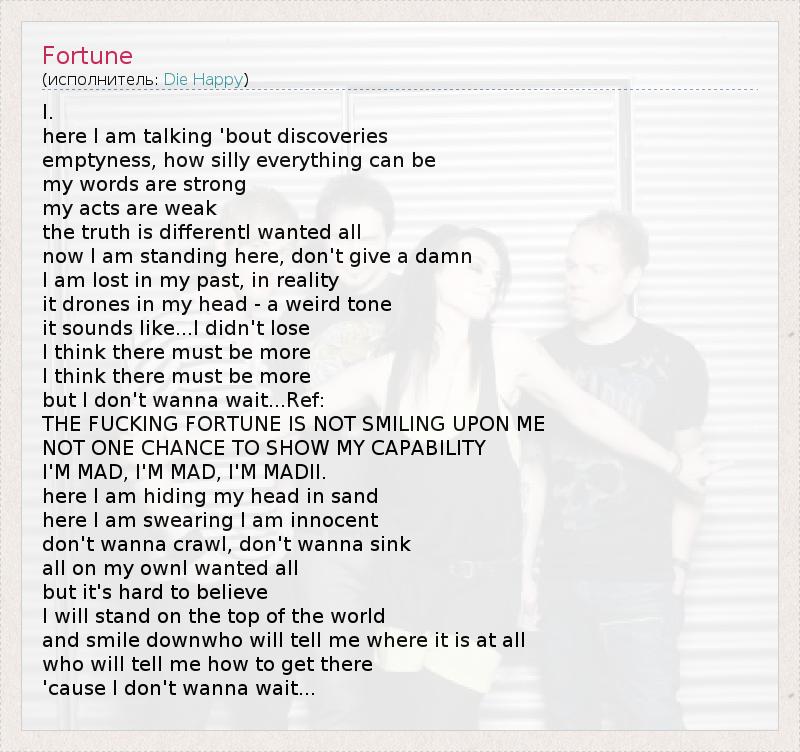 А как ты думаешь, о чем песня "Fortune" ?