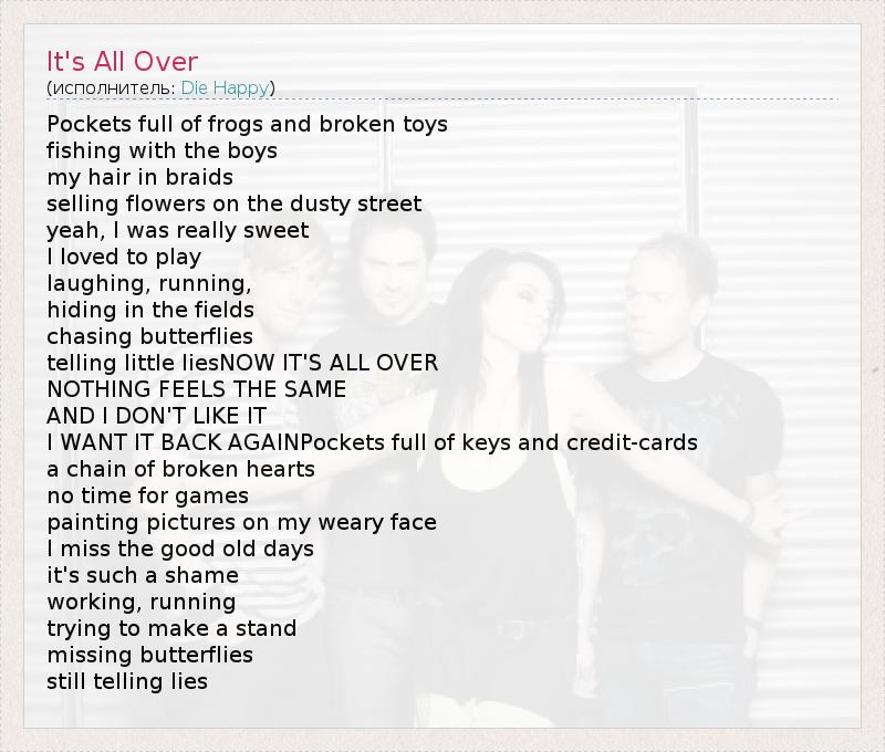 Это интересно:Die Happy - это немецкая группа из города Ульма (Ulm). Название группы (дословно "Умри Счастливым") на английском экстрим-сленге означает (одновременный летальный) перелом шеи и ноги. Критики отмечают их музыкальный стиль как Popcore: смесь rock и pop.Группа основана в 1993 году чешской певицей Мартой Яндовой (Marta Jandová) и Торстеном Мевесом (Thorsten Mewes), получившими в этом году аттестат зрелости.Die... продолжение