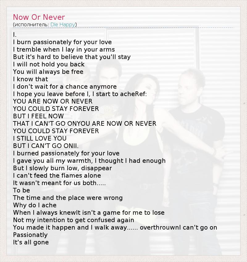 А как ты думаешь, о чем песня "Now Or Never" ?