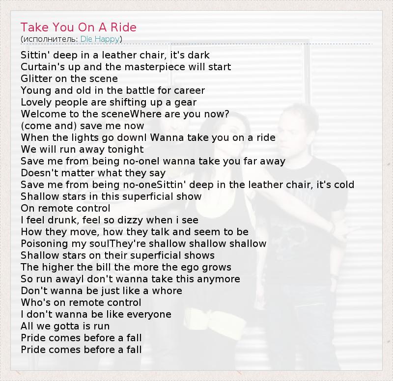 А как ты думаешь, о чем песня "Take You On A Ride" ?