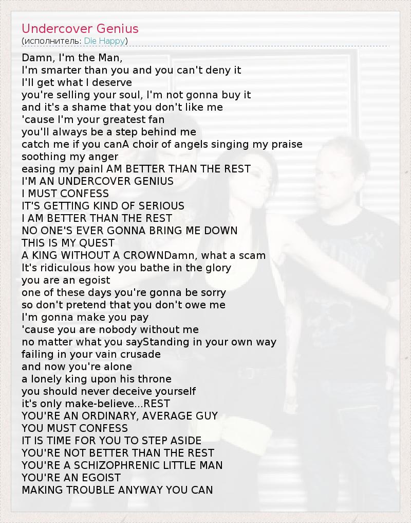А как ты думаешь, о чем песня "Undercover Genius" ?