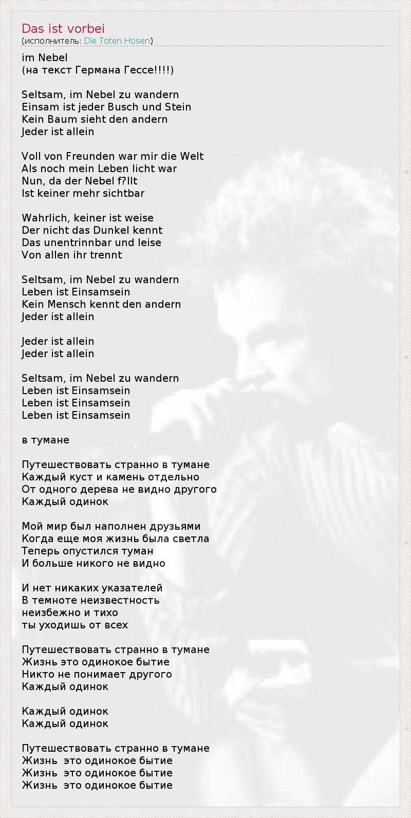 А как ты думаешь, о чем песня "Das ist vorbei" ?