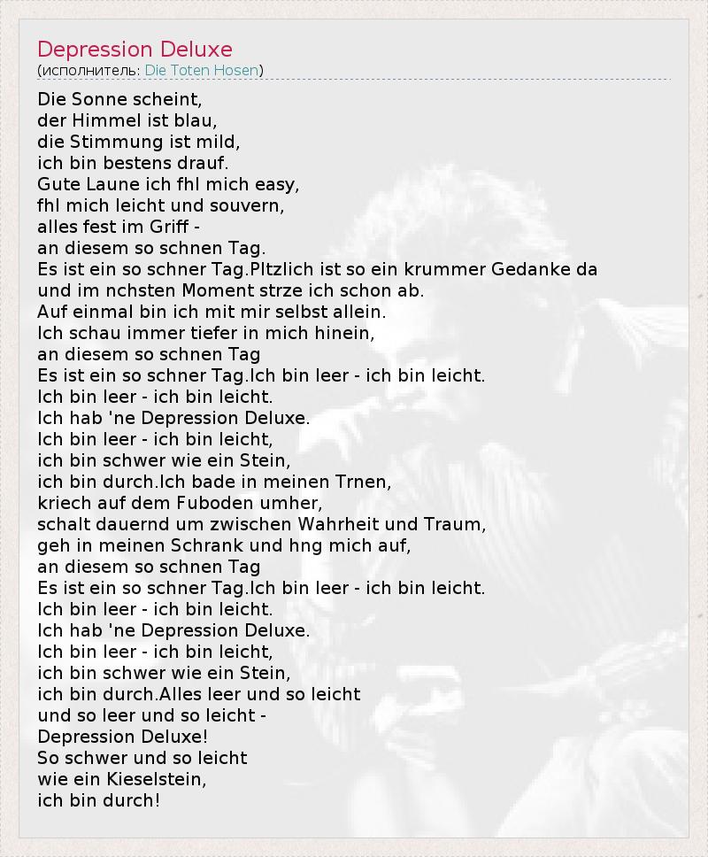 А как ты думаешь, о чем песня "Depression Deluxe" ?