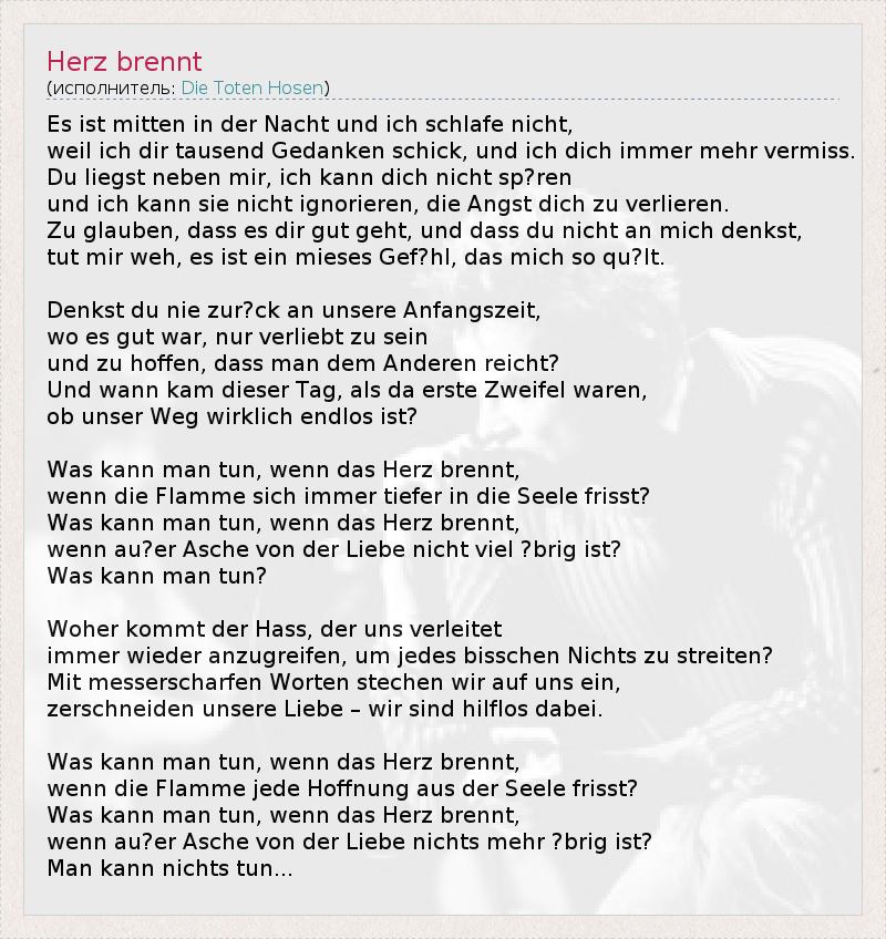 А как ты думаешь, о чем песня "Herz brennt" ?