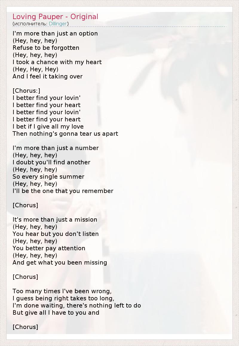 А как ты думаешь, о чем песня "Loving Pauper - Original" ?