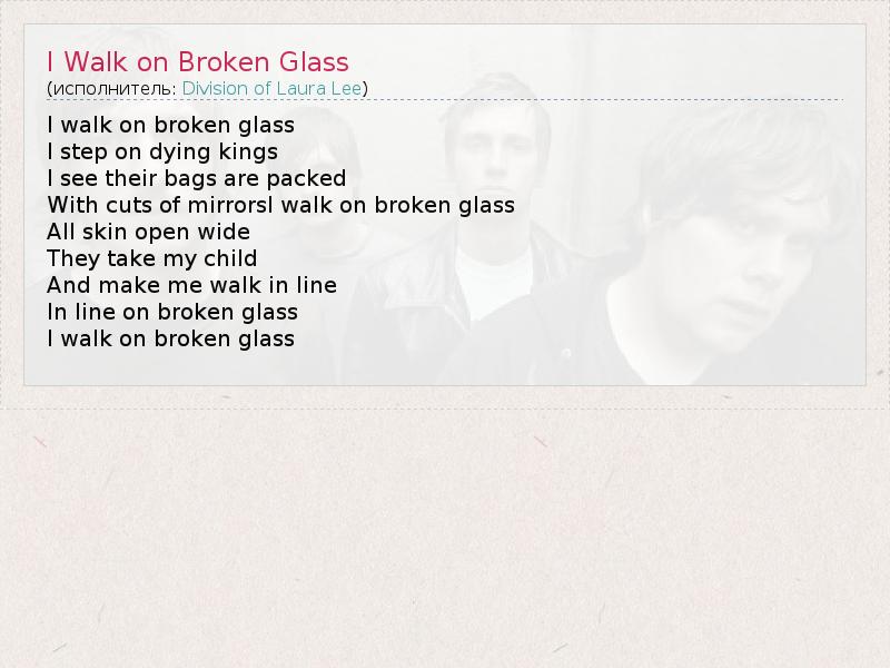 А как ты думаешь, о чем песня "I Walk on Broken Glass" ?