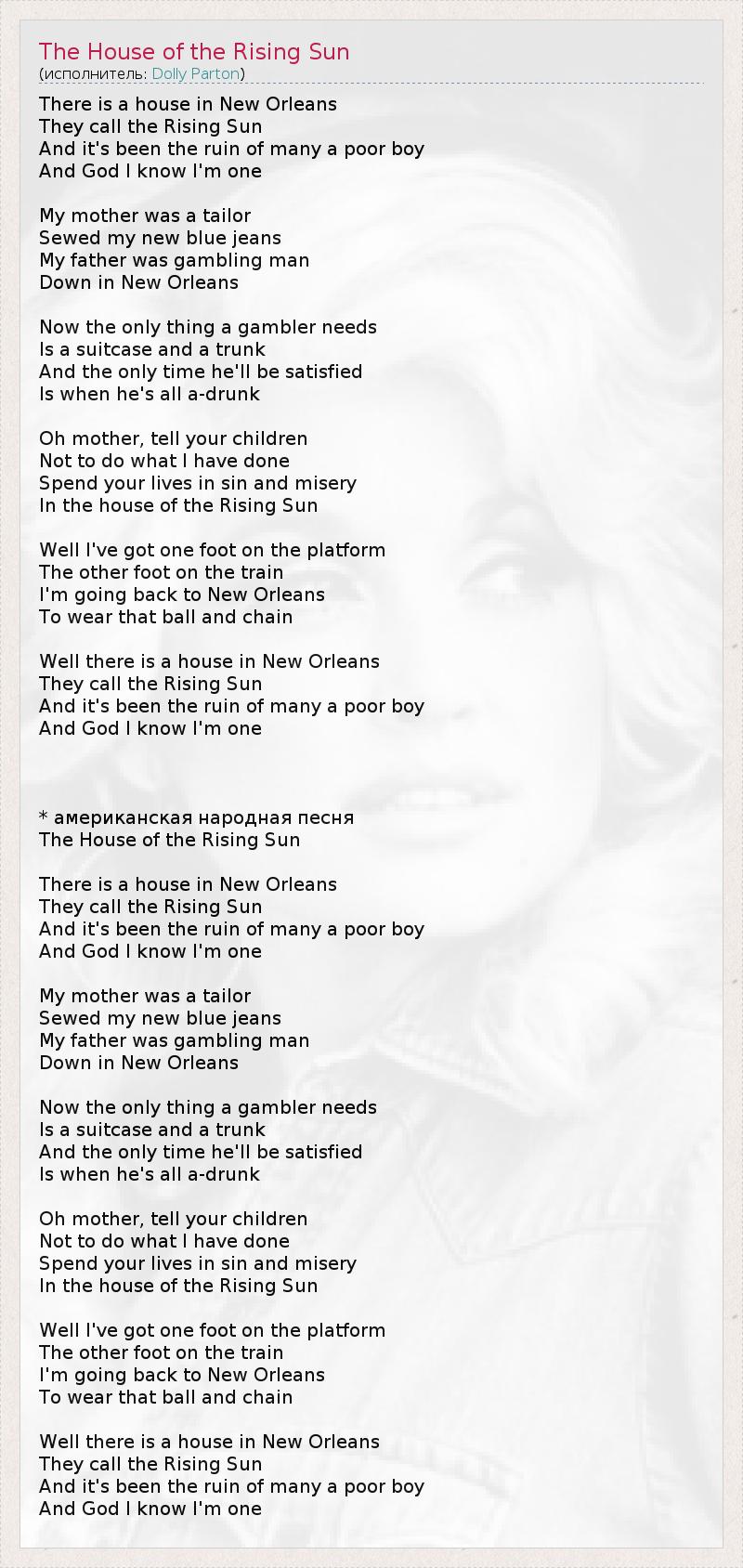 ГлавнаяИсполнителиDolly PartonThe House of the Rising Sun