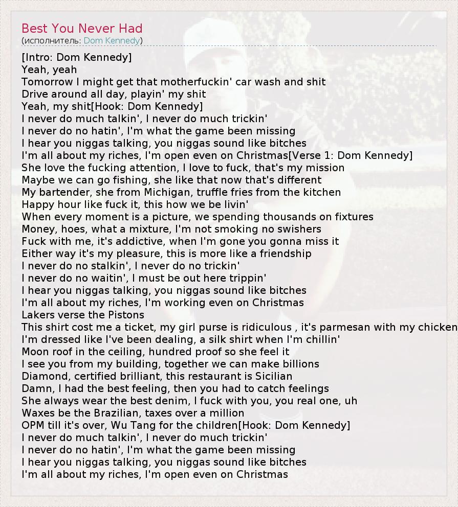 А как ты думаешь, о чем песня "Best You Never Had" ?