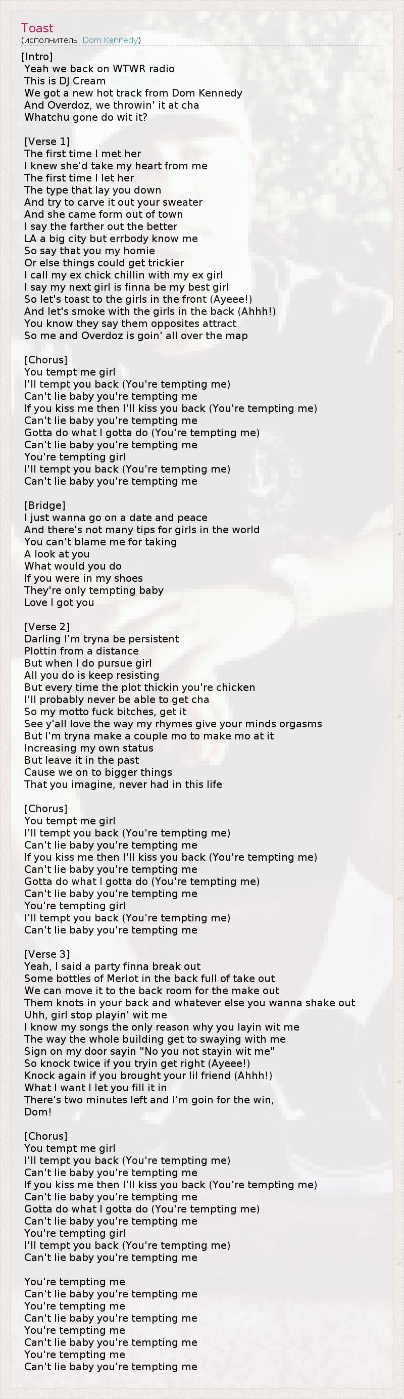 А как ты думаешь, о чем песня "Toast" ?