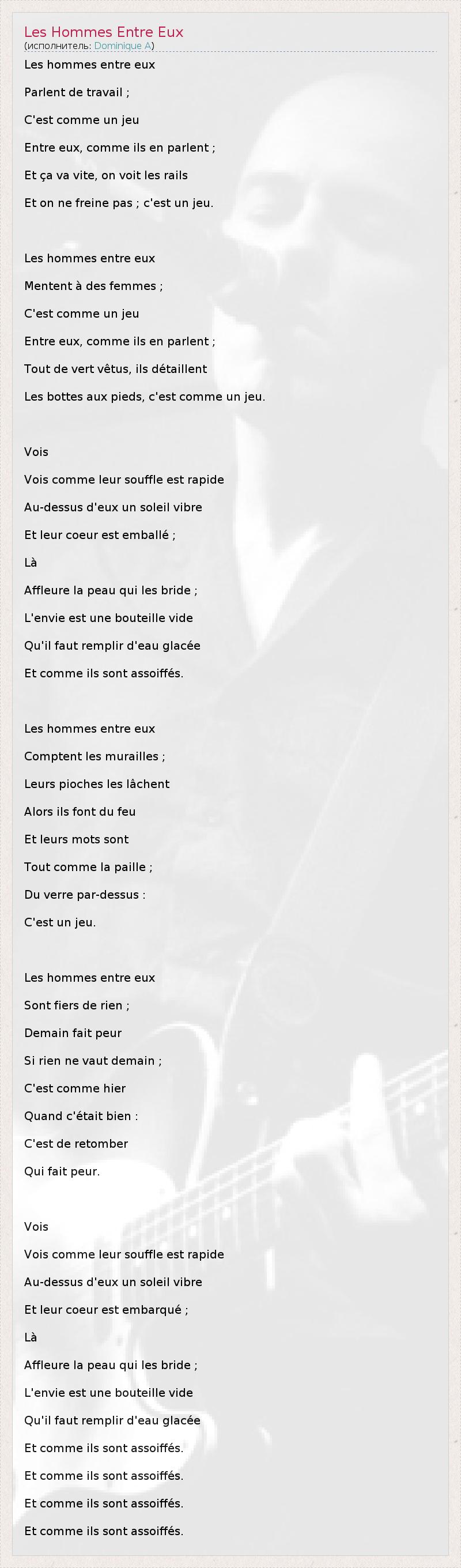 А как ты думаешь, о чем песня "Les Hommes Entre Eux" ?