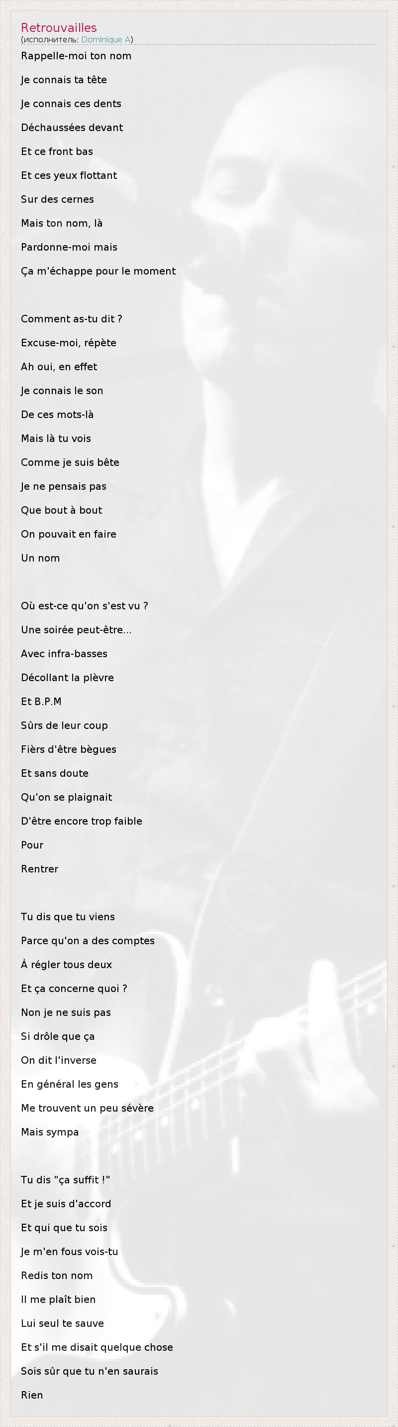 А как ты думаешь, о чем песня "Retrouvailles" ?