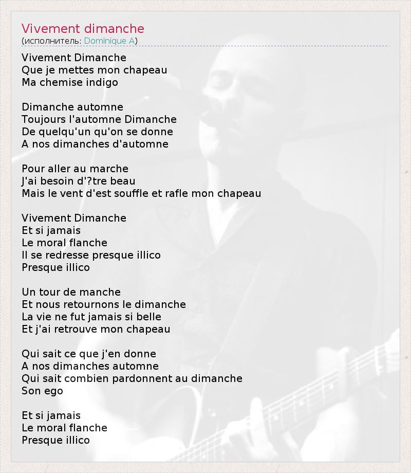 А как ты думаешь, о чем песня "Vivement dimanche" ?