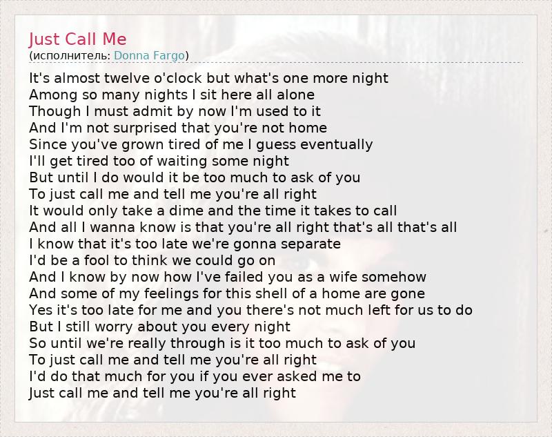 А как ты думаешь, о чем песня "Just Call Me" ?