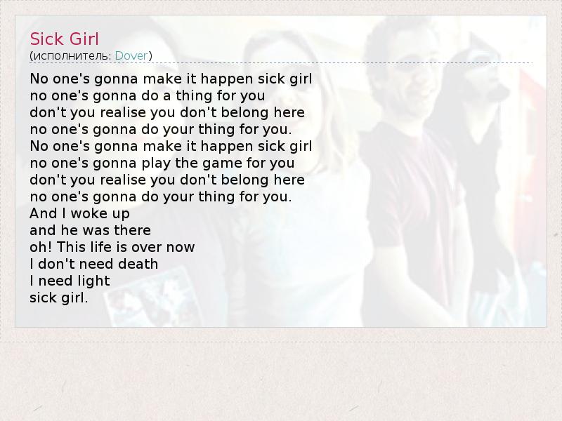 А как ты думаешь, о чем песня "Sick Girl" ?