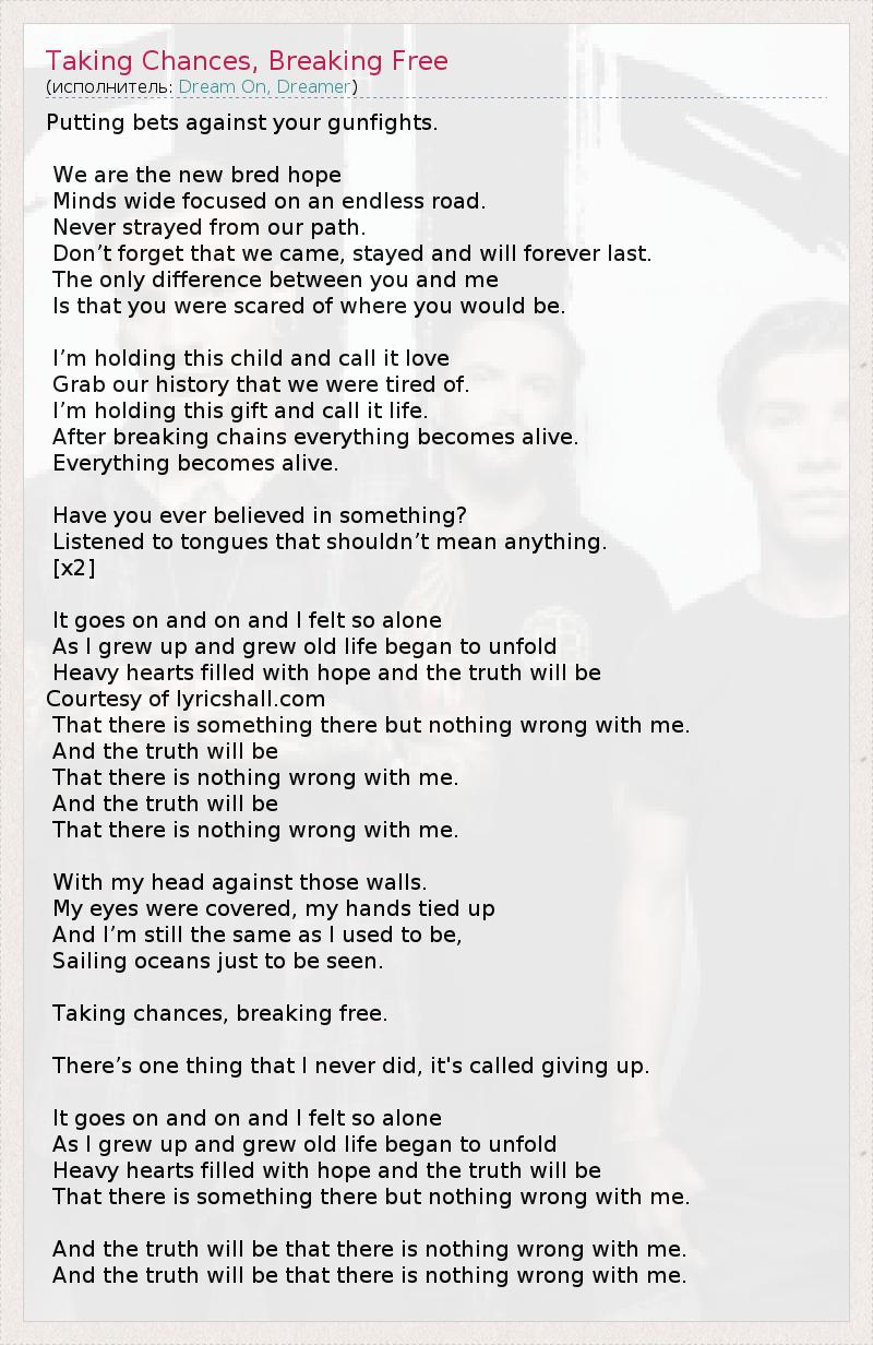 А как ты думаешь, о чем песня "Taking Chances, Breaking Free" ?