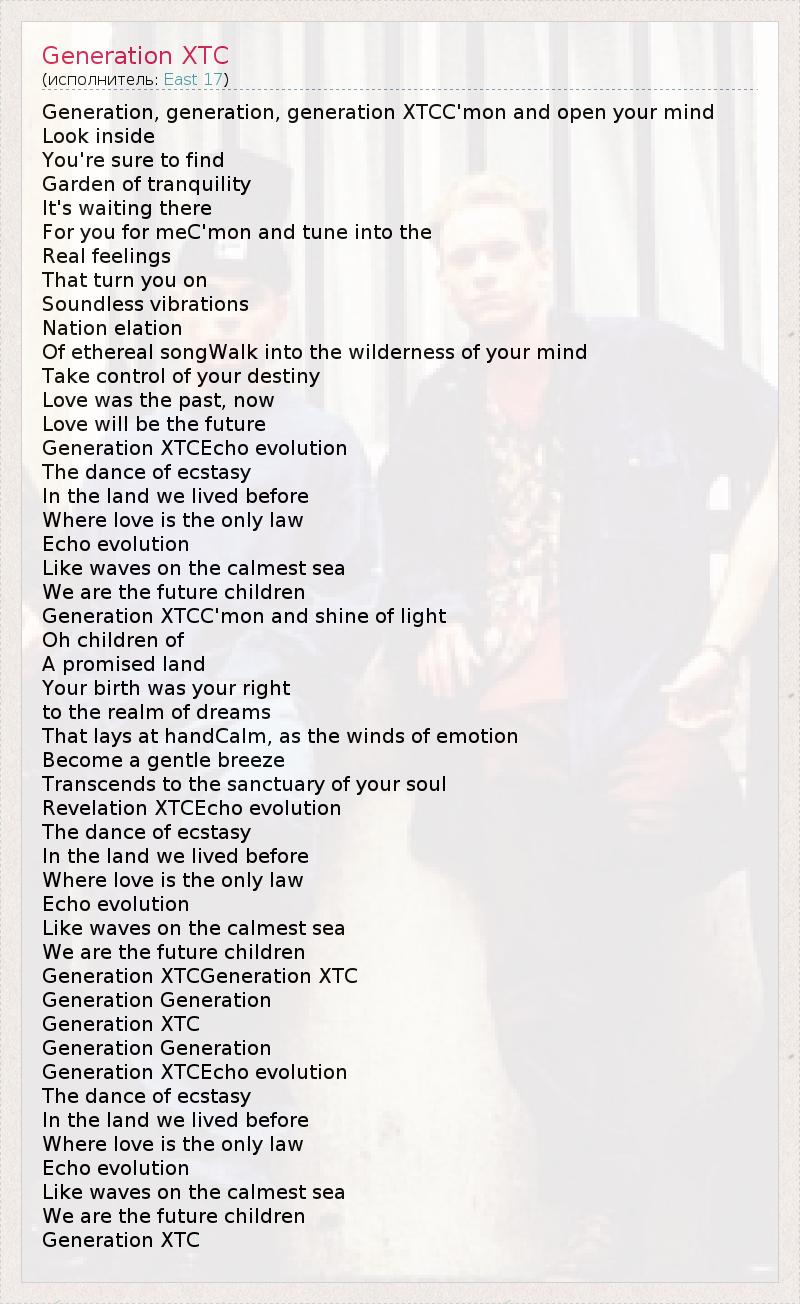 А как ты думаешь, о чем песня "Generation XTC" ?