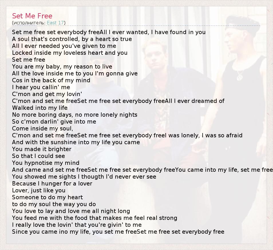 А как ты думаешь, о чем песня "Set Me Free" ?